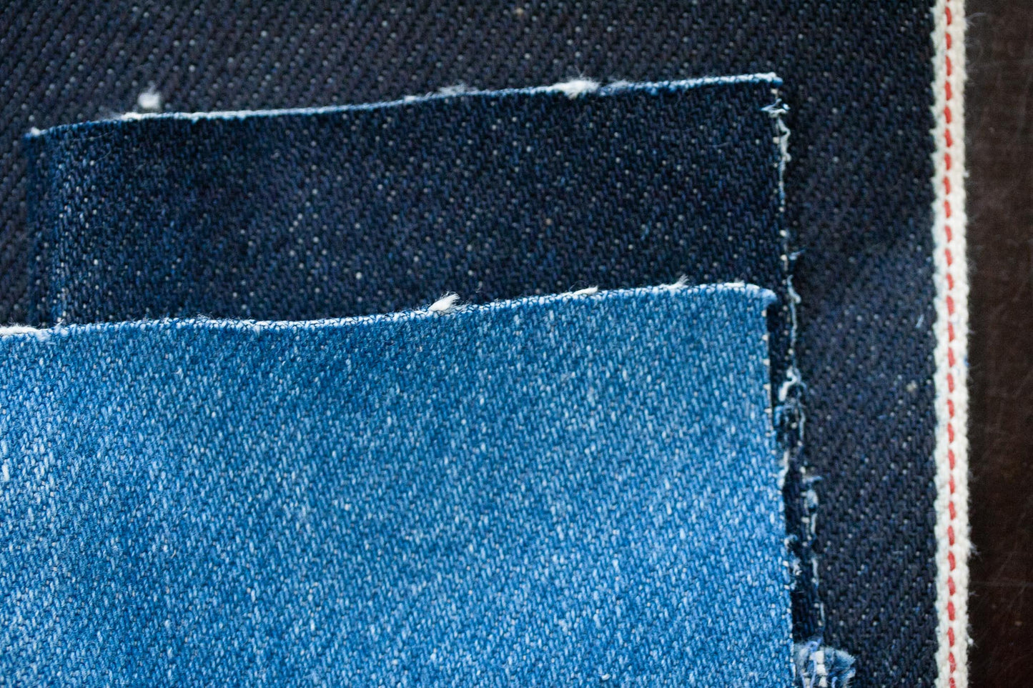 dark indigo-blue Selvage Denim mit weiß-roter Webkante